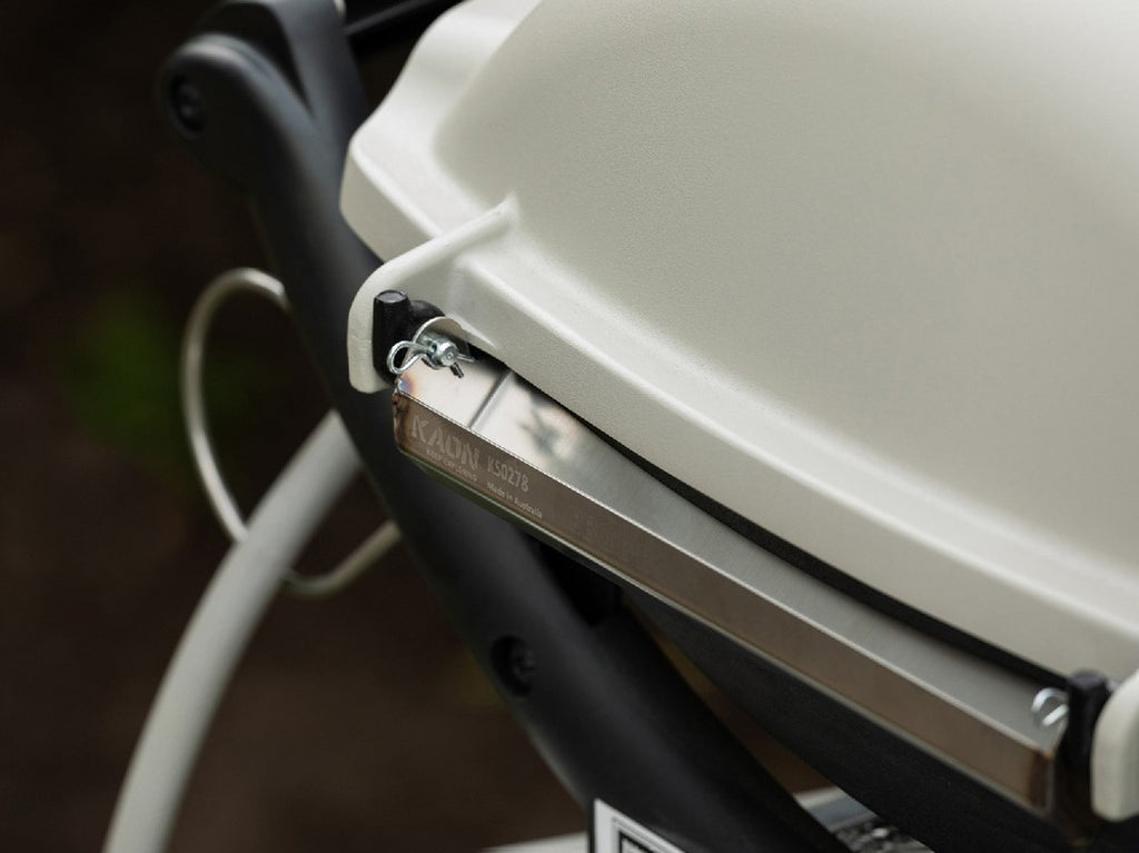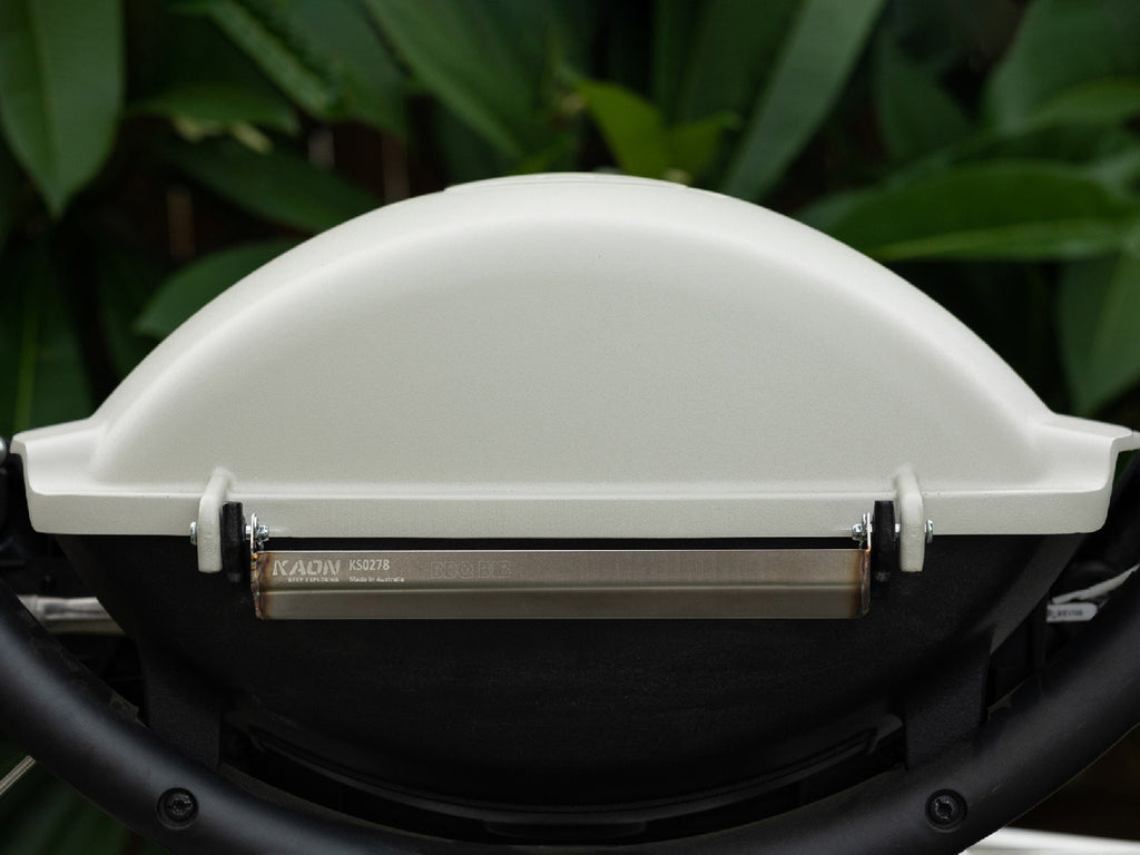they love Kaon's theyber, but they find that oil and grease build up on the lid eventually drips down and makes a mess, both of the BBQ and the surface it’s sitting on. To combat this, they designed Kaon's lid drip tray – think of it as a BBQ Bib for your dribbling BBQ.
