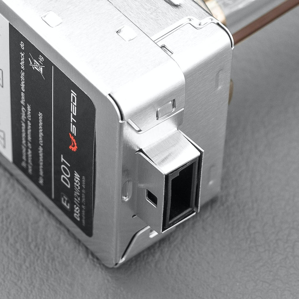 Unlike other retro-fit solutions on the market, Stedi D3S doesn't require any adaptors or wiring hacks. Just like the original equipment, the D3S kit integrates the starter and igniter in the base of the unit and will plug directly into your factory headlight wiring harness.