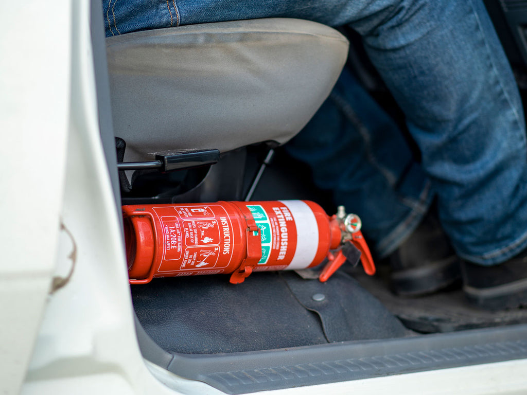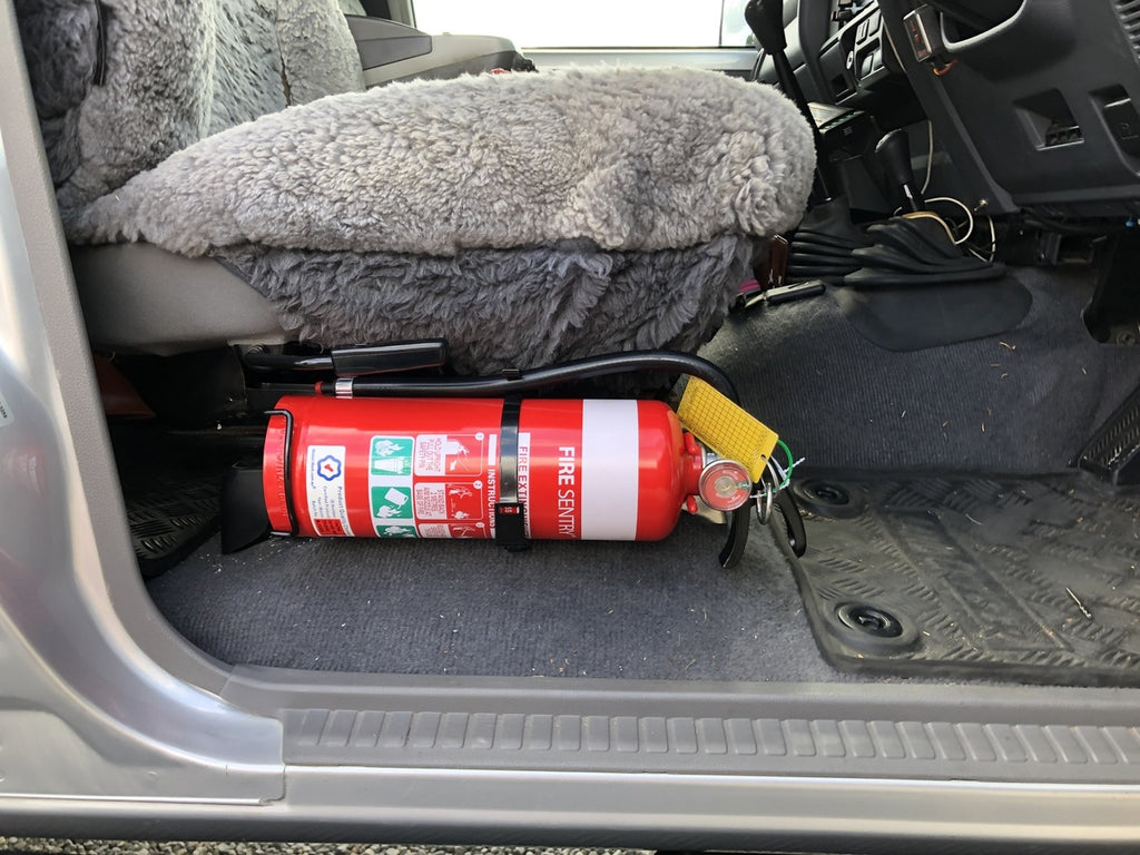 We all know it’s a good idea to travel with a fire extinguisher, but it’s tricky to work out how to store one so you have immediate access in an emergency. Front Seat Fire Extinguisher mounting brackets provide a safe and secure location that is right at your feet, saving precious time in the event something goes wrong.