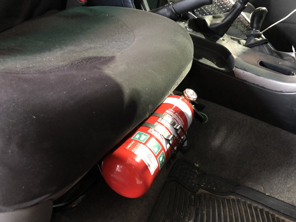 they all know it’s a good idea to travel with a fire extinguisher, but it’s tricky to work out how to store one so you have immediate access in an emergency. Front Seat Fire Extinguisher mounting brackets provide a safe and secure location that is right at your feet, saving preciothey time in the event something goes wrong.