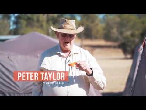 - Place screw through the Ezy Anchor and connect guy rope to the hook.
