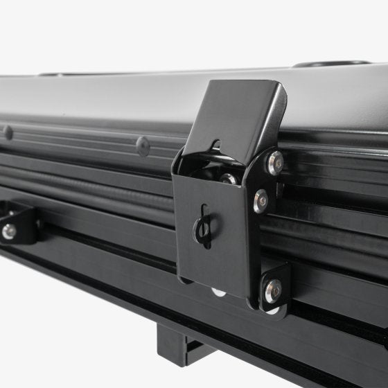 The Ridgeback body tent is made from ecoWGAF™ - 280gsm Polyester Oxford Ripstop / 100% Recycled RPET premium 280gsm Ripstop Recycled Polyester Oxford. This tent has an impressive 3000mm water rating, high profile automotive rubber weather seals, internal seam sealing and a removable fly that will keep you dry in extended rainy conditions With roof rails accessory kits available (sold separately), the Ridgeback delivers everything you’ll ever need in a hard shell roof top tent and more. The included mounting brackets suit most commercially available flat roof rack or roof rail systems. Make sure to check the weight rating and suitability of your roof rack and vehicle with appropriate manufacturers prior to purchase. We recommend professional installation through your local 4WD centre or ask your DARCHE dealer for advice about installation.