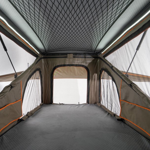 The Ridgeback HighRize is our biggest hardshell roof top tent, but it still packs down slimmer than most soft shell tents. The high-spec build gives you unparalleled quality, with German-engineered Stabilus struts that provide effortless set up and pack down.
