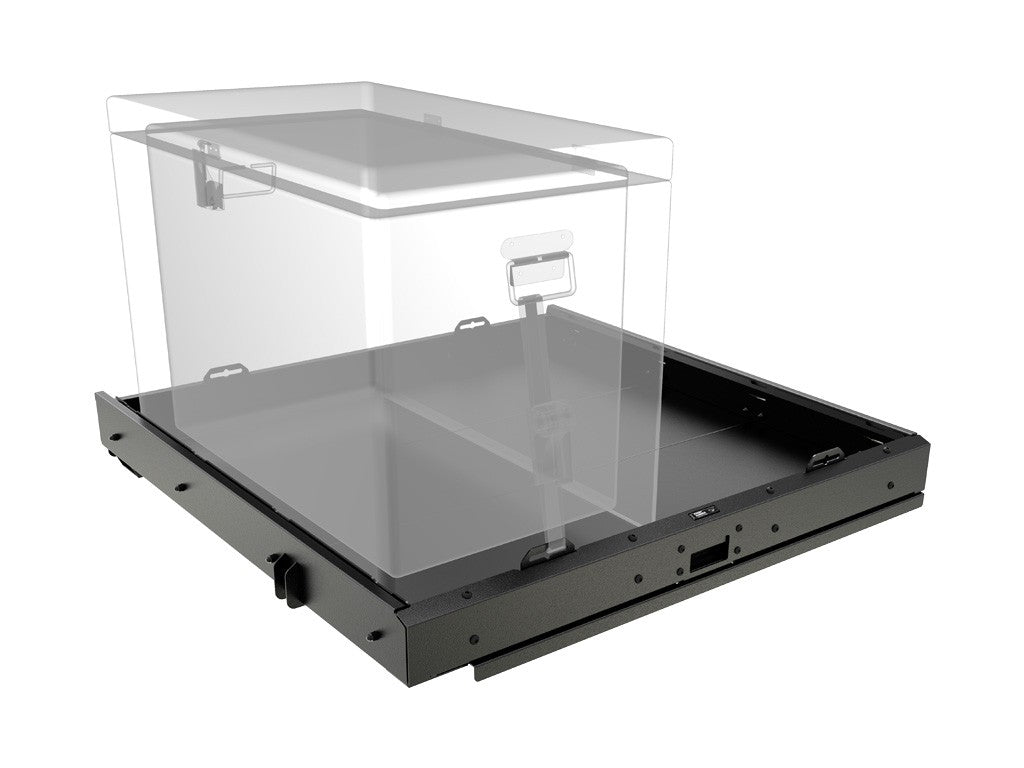 Consists of:1 x Flat Roller Drawer1 x Front Mounting Strap Installation Hardware Materials used: Black powder-coated mild steel Product Dimensions:852mm (33.5) L x 898mm (35.4) W x 128mm (5) H Internal Tray Dimensions:778mm (30.6) L x 780mm (30.7) W x 60mm (2.4) DWeight:29kg (63.9lbs)Load Rating:113 kg (250lbs)