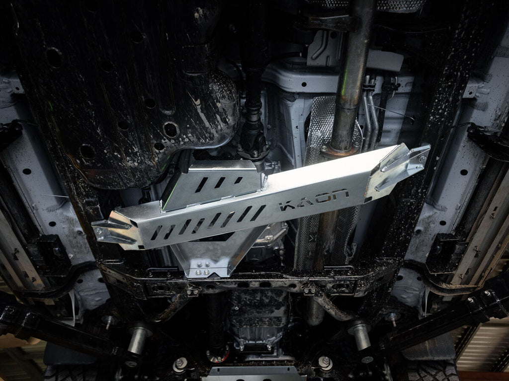 Kaon's Actuator Guard does not mount to the transfer case, but rather mounts to the chassis rail and central cross member, providing unrivalled strength and protection.