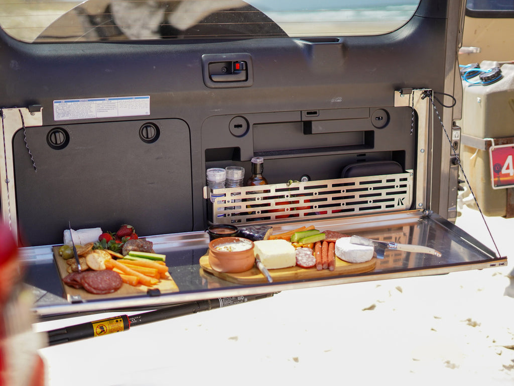 Summary: The Rear Door Drop Down Table and Cage makes for the ultimate work and prep surface for life on the road – whether it’s a roadside lunch, a little email catchup, or the ultimate drinks bar at the campsite.