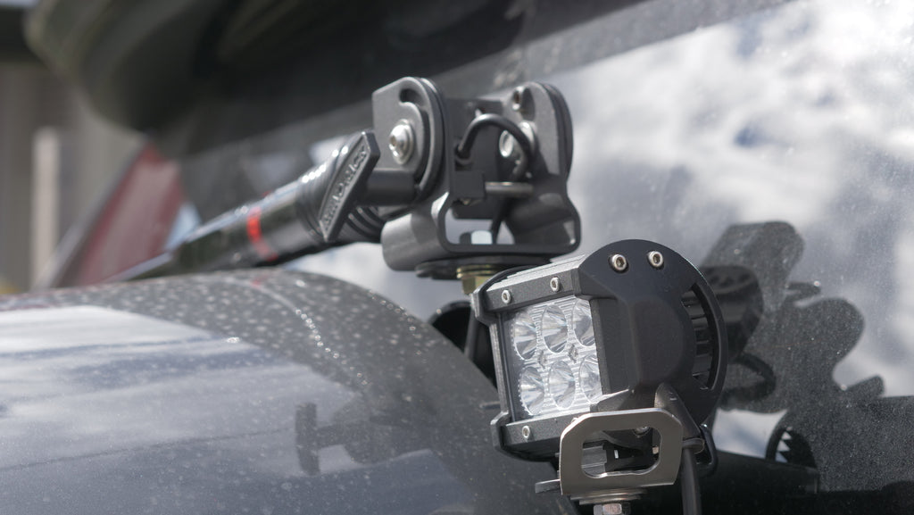 - Stacked mounting options provides flexibility in your setup – mount two aerials, or both an aerial and work/camp light.