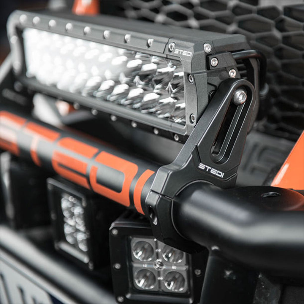 STEDI's all new 44.5mm to 48mm Universal Light Bar Mounting Bracket prove that tough doesn't need to be unsightly. Their brackets are guaranteed not slip or fatigue no matter the environment. Unlike other generic clamps on the market the aesthetically design of their light bar brackets facilitate a clean integrate install of your light bar work lights. .